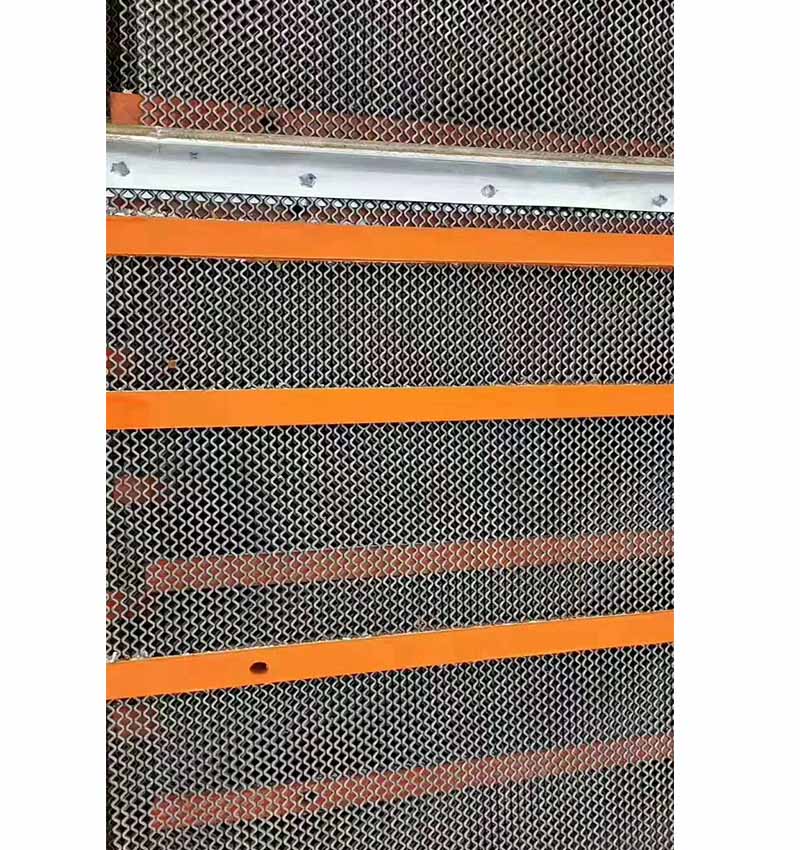 我們專業生產各種瀝青混凝土拌和機上振動篩機的配套篩網及大型石料廠、制砂廠振動篩篩網,已有30年制造經驗,采用特殊工藝,耐磨材料編織而成,其特點是防滑、硬度強、彈性好、抗壓、抗振、不易堵塞、不并攏,使用壽命長,曾獲國家新產品獎。